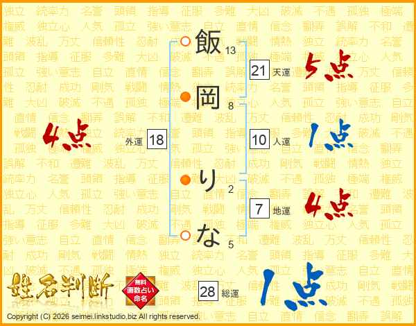 飯岡りなさんの外運は18画の4点!