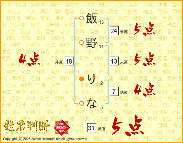 飯野りなさんの総運は31画の5点!