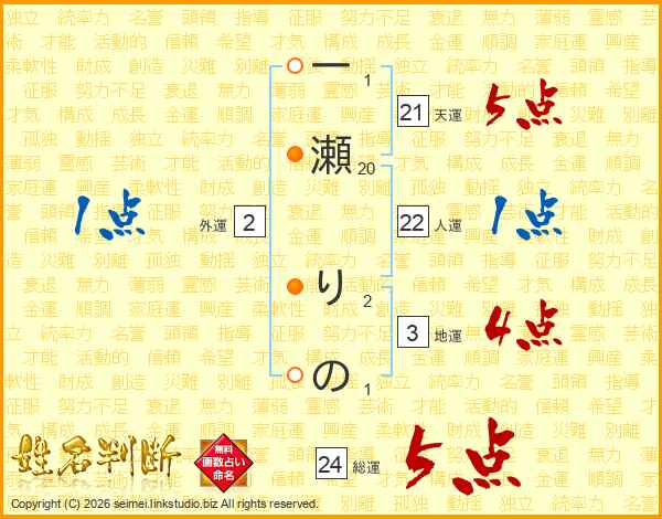 一瀬りのさんの総運は24画の5点!