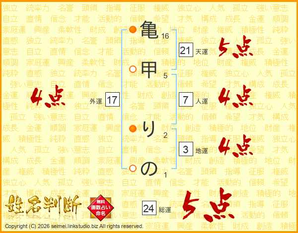 亀甲りのさんの天運は21画の5点!