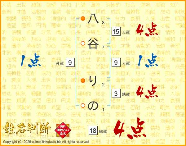 八谷りのさんの総運は18画の4点!
