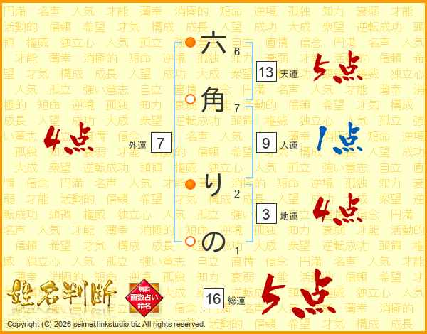六角りのさんの天運は13画の5点!