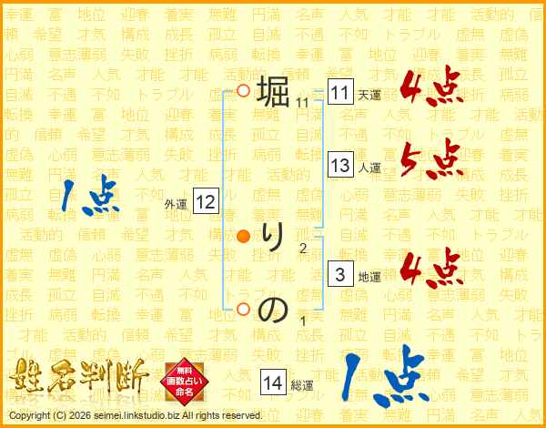 堀りのさんの総運は14画の1点!