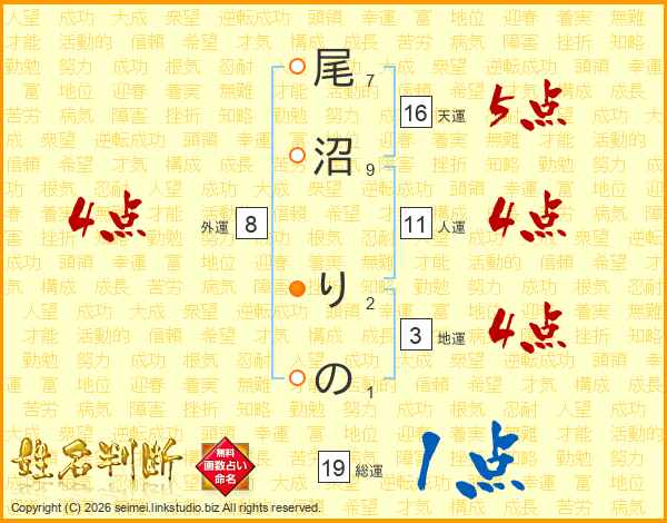尾沼りのさんの総運は19画の1点!