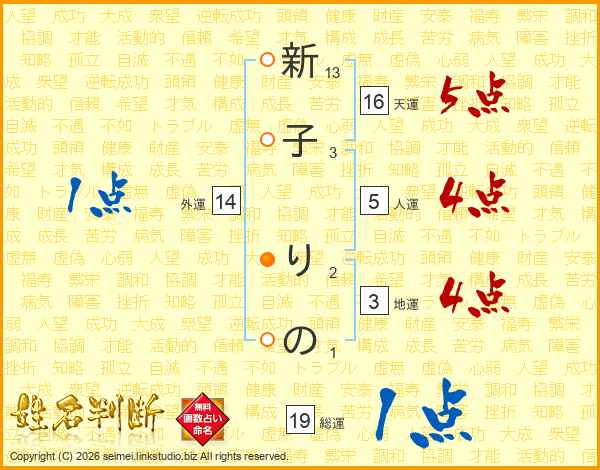 新子りのさんの天運は16画の5点!