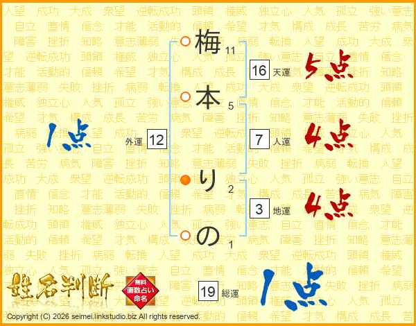 梅本りのさんの総運は19画の1点!
