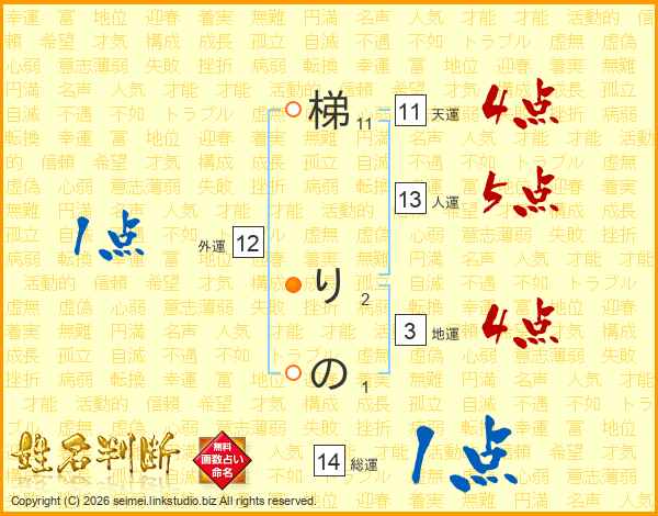 梯りのさんの総運は14画の1点!