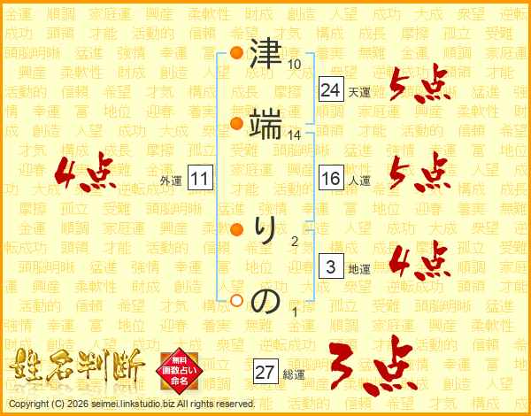 津端りのさんの総運は27画の3点!