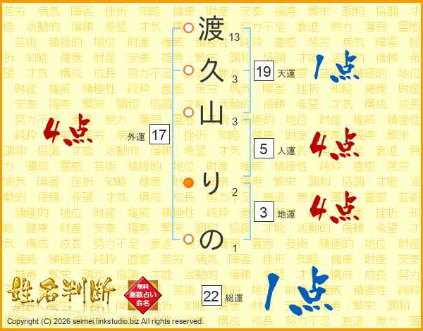渡久山りのさんの総運は22画の1点!