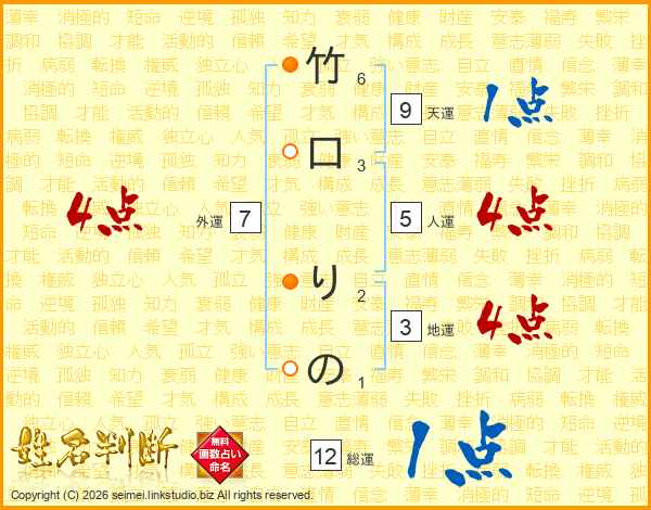 竹口りのさんの外運は7画の4点!