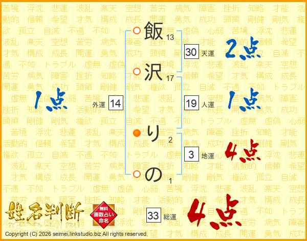 飯沢りのさんの総運は33画の4点!