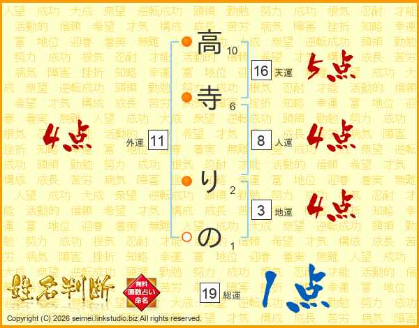 高寺りのさんの総運は19画の1点!