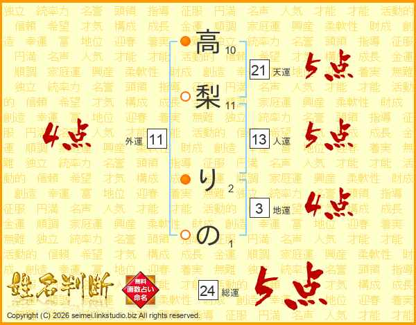 高梨りのさんの総運は24画の5点!