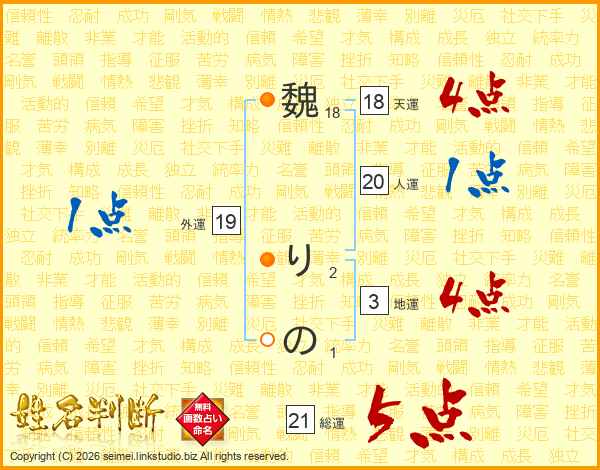 魏りのさんの総運は21画の5点!