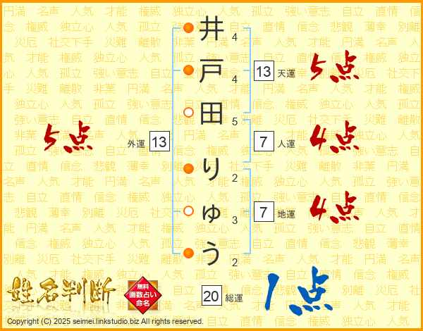 井(4画)戸(4画)田(5画) り(2画)ゅ(3画)う(2画)