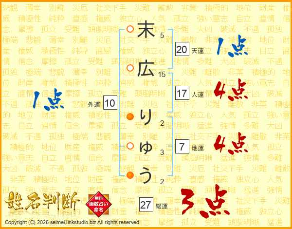 末広りゅうさんの総運は27画の3点!