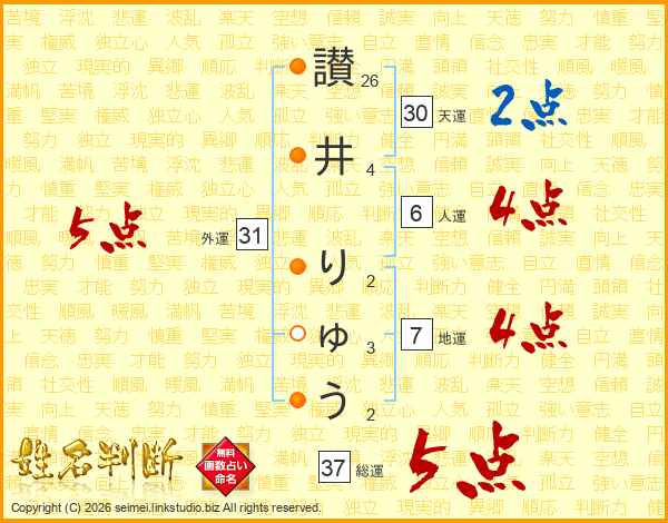 讃井りゅうさんの総運は37画の5点!
