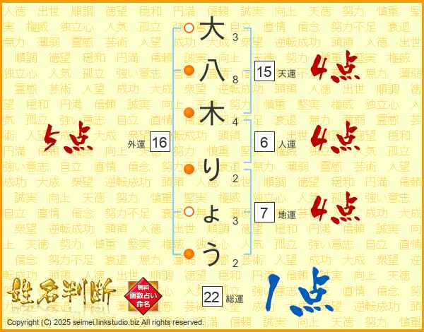 大(3画)八(8画)木(4画) り(2画)ょ(3画)う(2画)