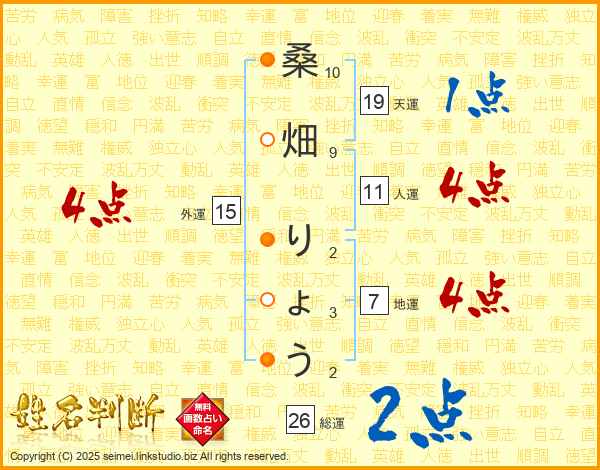 桑畑りょうさんの総運は26画の2点!
