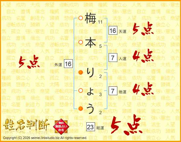 梅本りょうさんの総運は23画の5点!