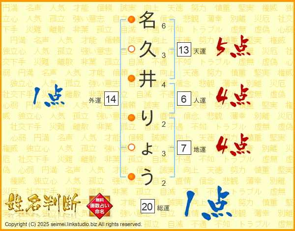 名久井りょうさんの総運は20画の1点!