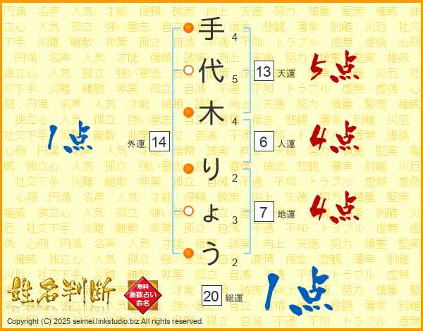 手代木りょうさんの天運は13画の5点!