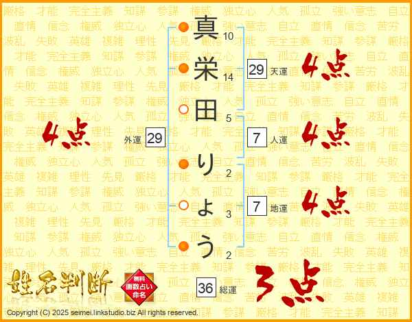 真栄田りょうさんの天運は29画の4点!