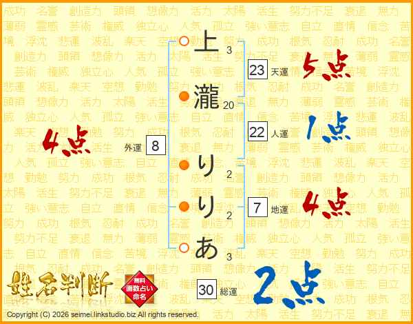上瀧りりあさんの総運は30画の2点!