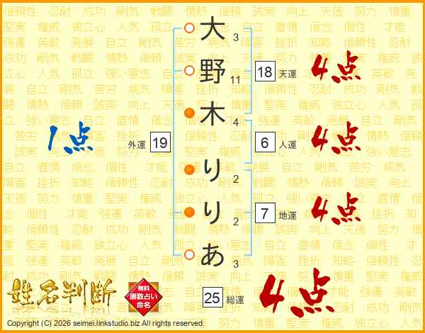 大野木りりあさんの総運は25画の4点!