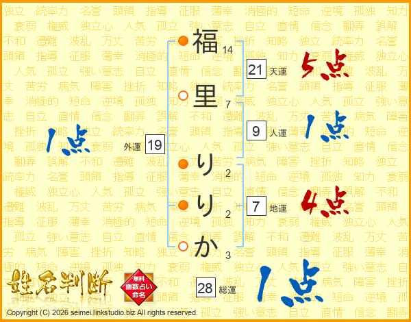 福(14画)里(7画) り(2画)り(2画)か(3画)