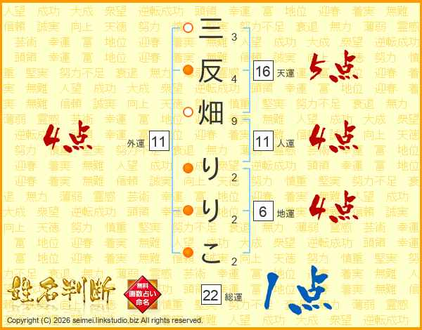 三反畑りりこさんの人運は11画の4点!
