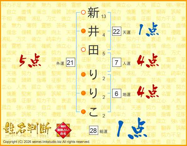 新井田りりこさんの外運は21画の5点!