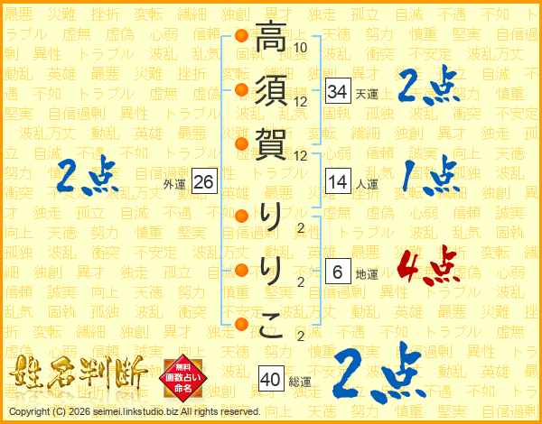 高須賀りりこさんの総運は40画の2点!