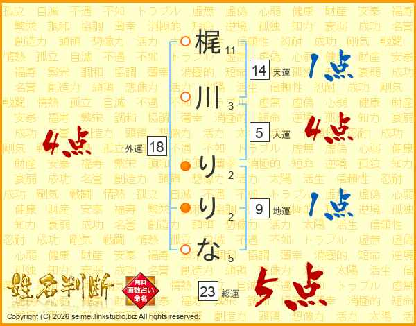 梶(11画)川(3画) り(2画)り(2画)な(5画)