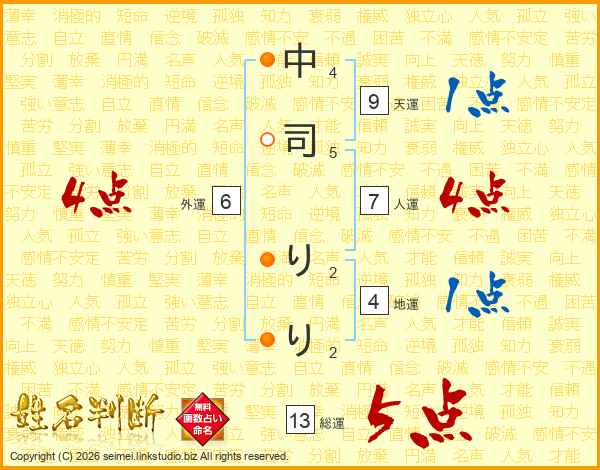 中司りりさんの総運は13画の5点!