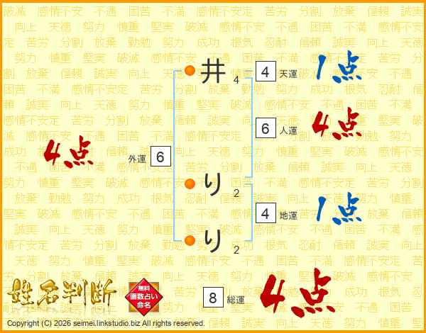 井りりさんの総運は8画の4点!