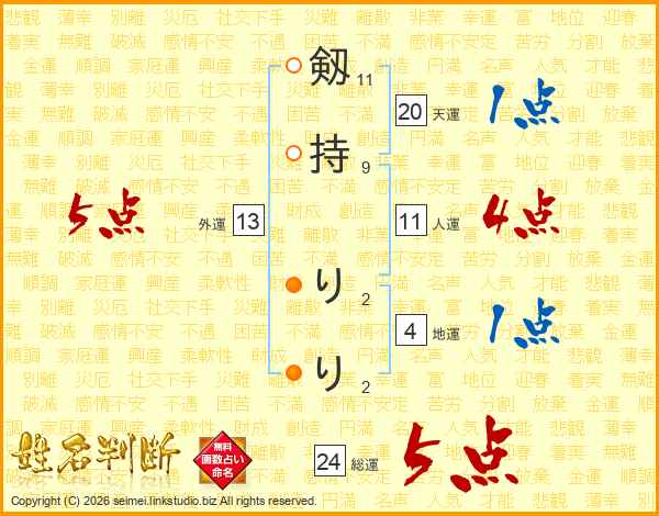 剱持りりさんの総運は24画の5点!