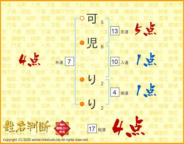 可児りりさんの総運は17画の4点!