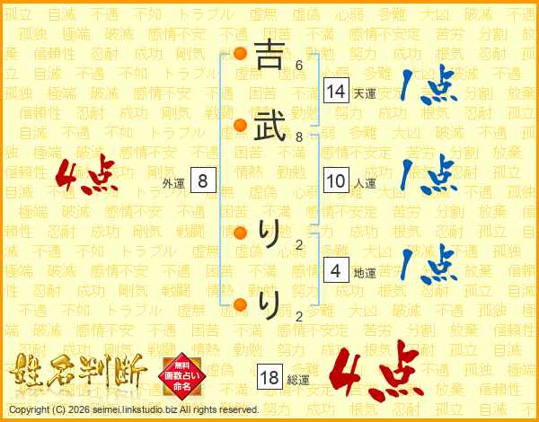 吉(6画)武(8画) り(2画)り(2画)