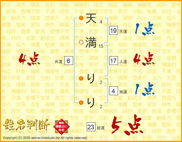 天満りりさんの総運は23画の5点!