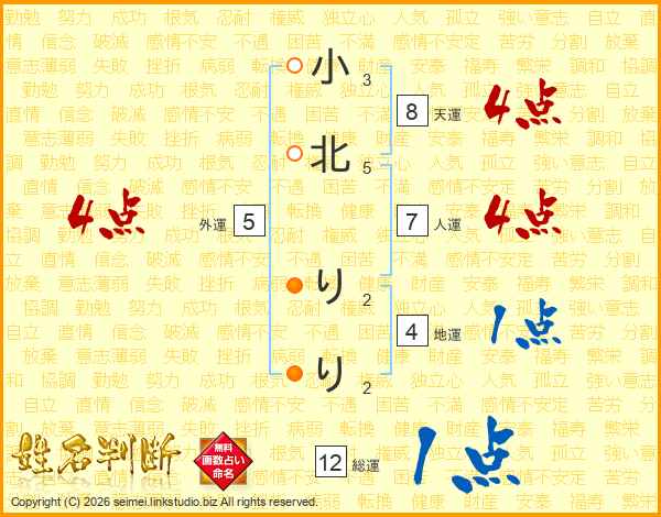 小北りりさんの総運は12画の1点!