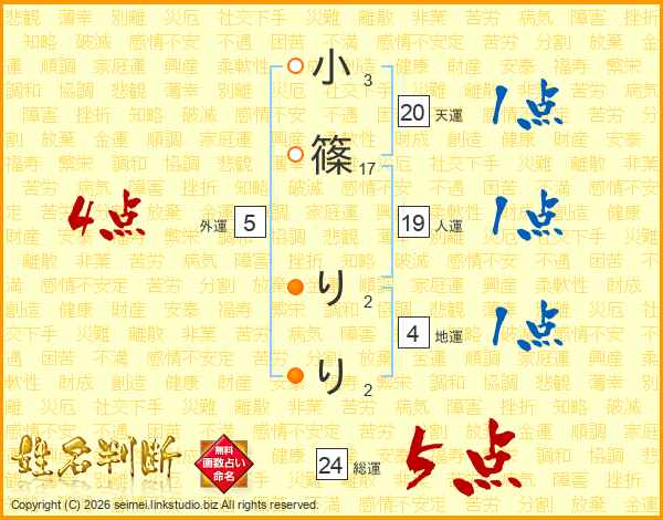 小篠りりさんの総運は24画の5点!