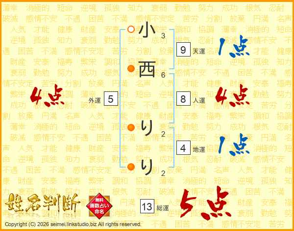小西りりさんの総運は13画の5点!