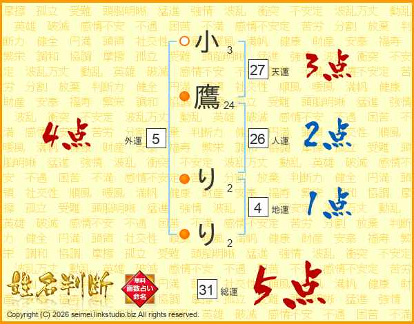 小鷹りりさんの総運は31画の5点!