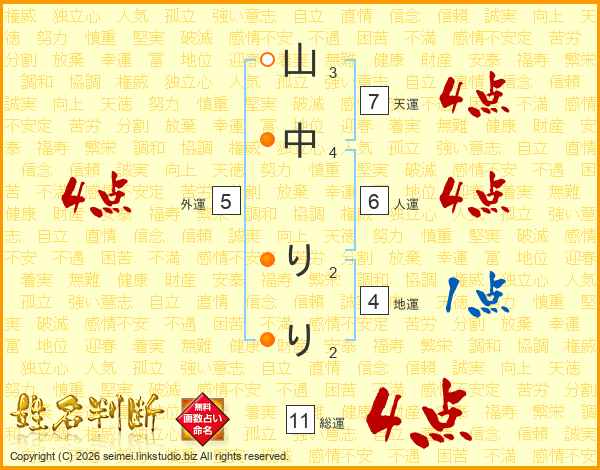 山中りりさんの総運は11画の4点!