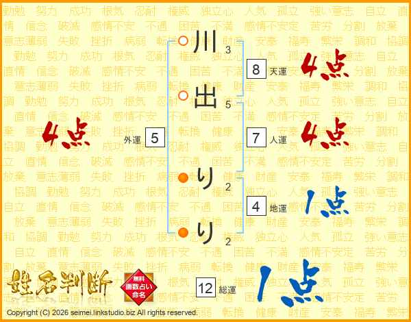 川出りりさんの総運は12画の1点!