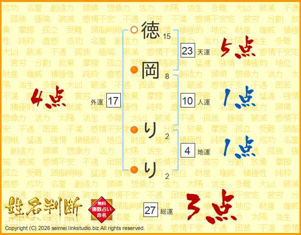 徳岡りりさんの総運は27画の3点!