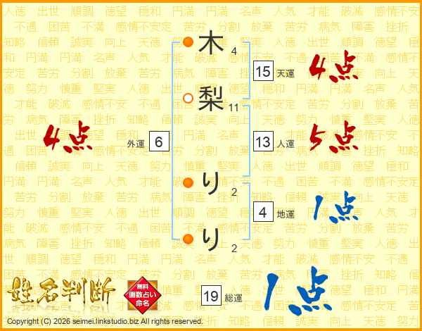 木梨りりさんの天運は15画の4点!