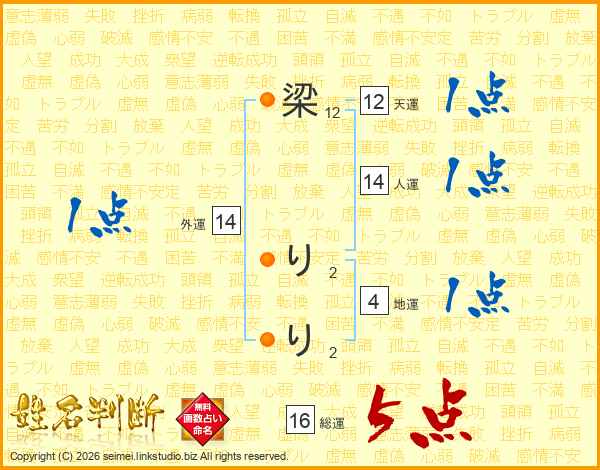 梁りりさんの総運は16画の5点!