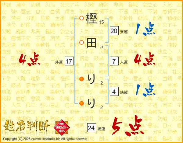 樫田りりさんの総運は24画の5点!